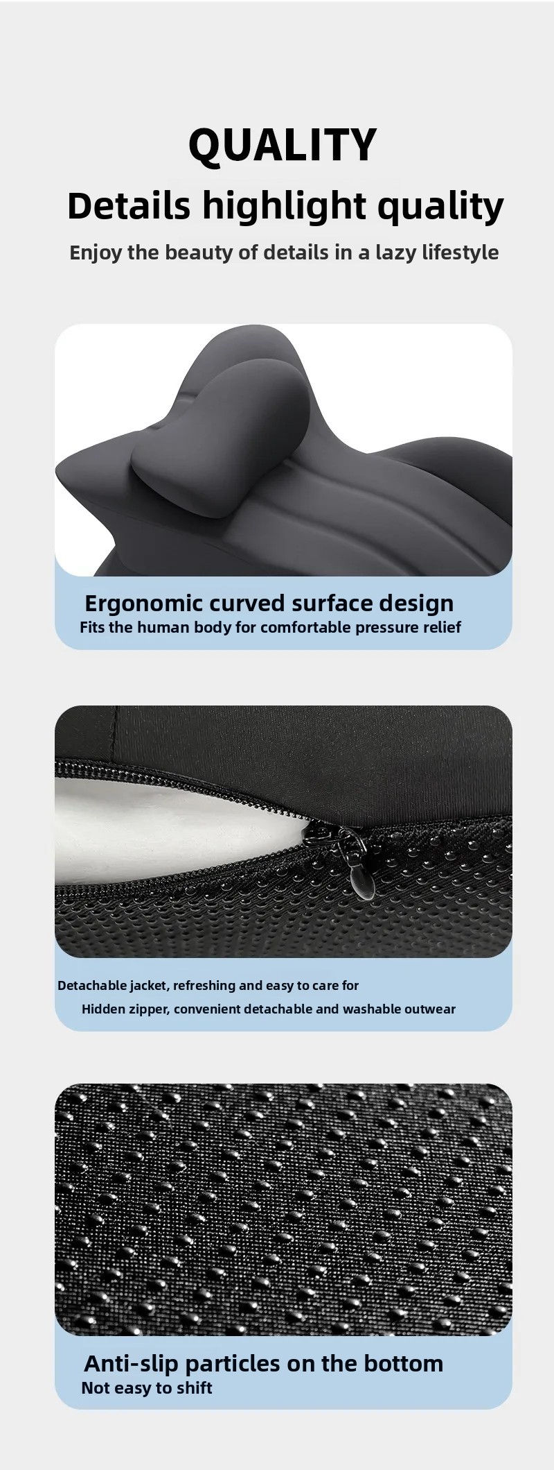 Zonagem contornada para suporte direcionado: Projetada com 4 zonas ergonômicas, esta almofada de cunha oferece suporte corporal personalizado.A área curva do peito acende confortavelmente seu corpo, quer você durma nas costas ou no estômago, ajudando a aliviar a tensão no pescoço e nos ombros.Também pode ser usado para elevação das pernas.As ranhuras de suporte do braço evitam dormência e dor ao jogar ou rolar na posição do estômago.O apoio de cabeça removível apoia a cabeça e o pescoço durante o sono nas costas.