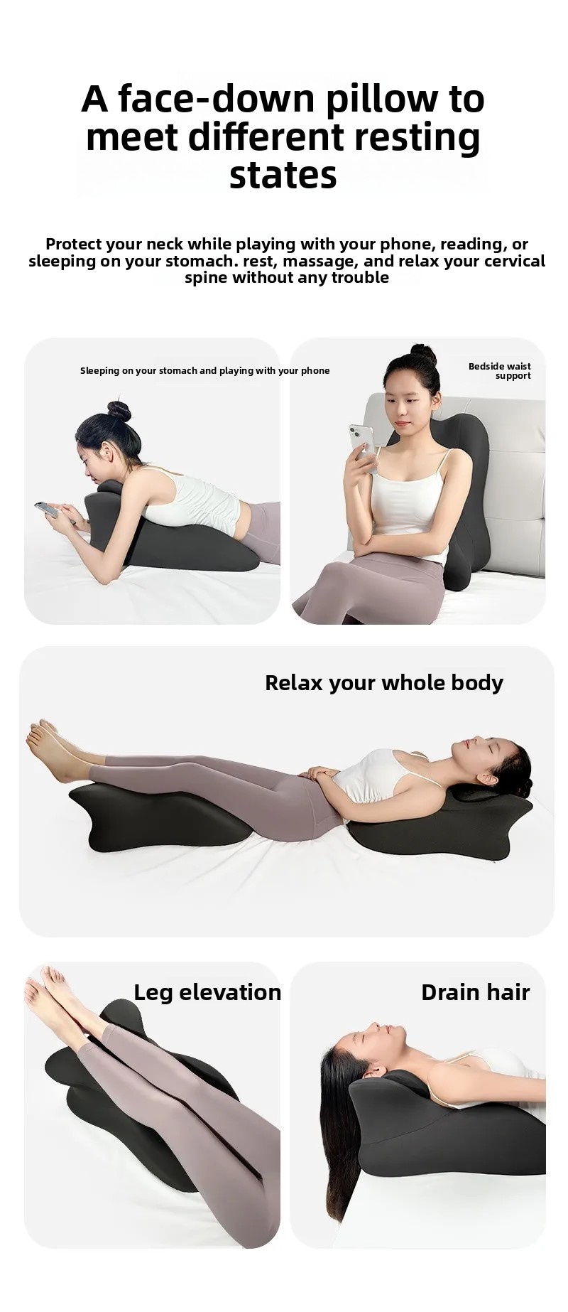 Uma solução ergonômica: você costuma sentir desconforto ao rolar, ler ou assistir TV na cama?Deitar de bruços ou reclinar por longos períodos pode causar dores nos ombros, pescoço, cintura ou costas.Travesseiros tradicionais muitas vezes deixam você dolorido pela manhã.Esta almofada para dormir estomacal foi projetada para aliviar esses problemas, proporcionando conforto durante as atividades na hora de dormir e prevenindo dores em posições propensas ou elevadas.